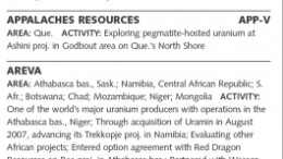 Vancouver — Despite uranium spot prices falling back from mid-2007’s of almost US$140 per lb., the metal is still garnering strong exploration interest at its more recent price of US$71 per lb.