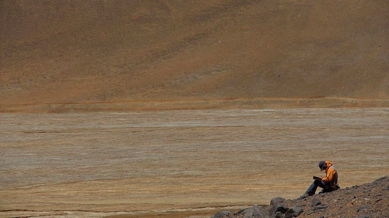 Copper sulphate mineralization at Filo del Sol project that straddles the border of Argentina and Chile. Credit: Filo Mining