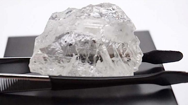 The 113-carat gem-quality white Lulo diamond. Credit: Lucapa Diamond
