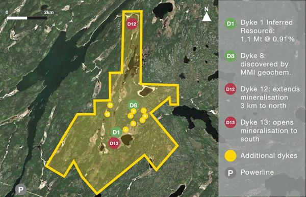 The company’s 3602-hectares  Zoro project consists of 16 claims. At least five diamond drill programs totaling about 8,500 meters in 60 holes and $5 million worth of exploration expenditures have led to the discovery of 12 new pegmatite dykes, according to the company.