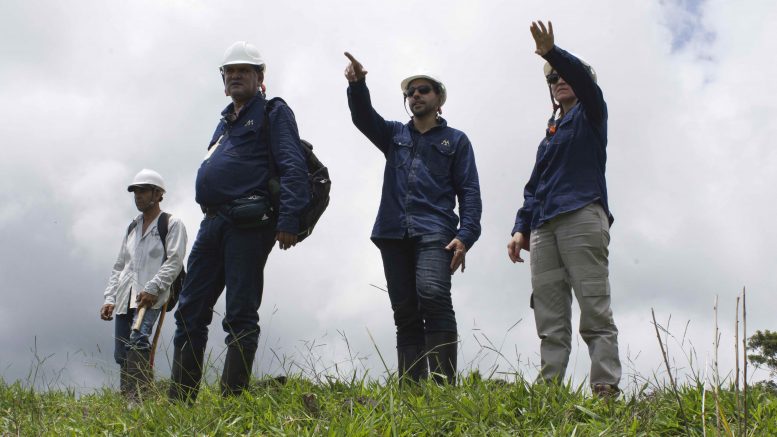 Baroyeca's president Raul Sanabria (middle, pointing) during a site visit to the company's Atocha project in Colombia. Credit: Baroyeca Gold & Silver