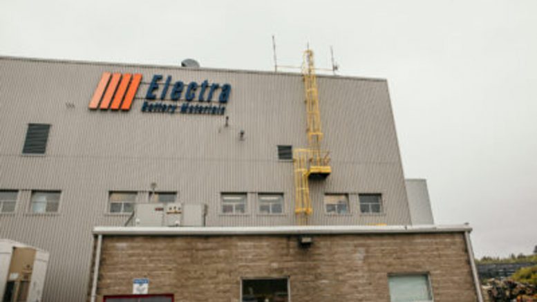 Electra Battery Materials (TSXV: ELBM; NASDAQ: ELBM) announced the launch of a demonstration plant designed to recover and recycle high-value elements found in lithium-ion batteries, including nickel, cobalt, lithium, copper and graphite at its refinery complex north of Toronto.