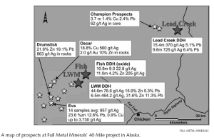 Full Metal Minerals (FMM-V, FLMTF-O) is receiving the last of its 2007 drill assays from its 40 Mile property in eastern Alaska.
