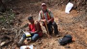 An Eagle Mountain worker cutting core. (Credit: Goldsource Mines)