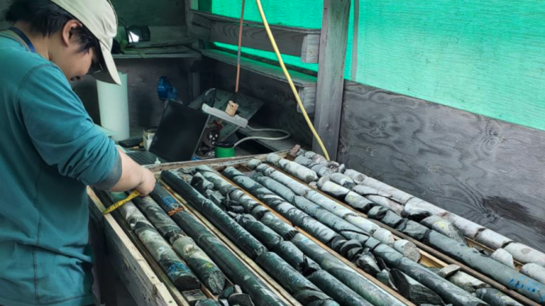 A worker exams core at Angilak in Nunavut. Credit: Latitude Uranium