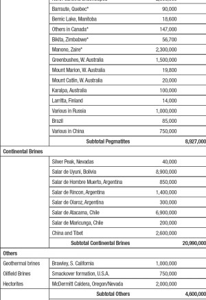 In 1975 most of the tonnages were in respect of pegmatites and we made deductions to allow for mining and processing losses. Only one major brine was included and, as we did not have a reasonable estimate of what recovery would be realized, an in situ tonnage was included. Apart from the pegmatite tonnages in the 1975 report, all other tonnages are in situ.