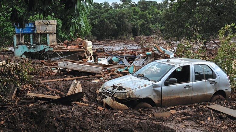Destruction caused by spilled tailings from the Feijao iron ore mine in January 2019. Credit: Felipe Werneck/Ibama.