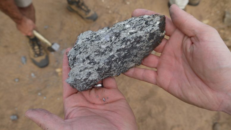 Drill core showcasing the graphite from the Molo project in Madagascar. Credit: NextSource Materials.