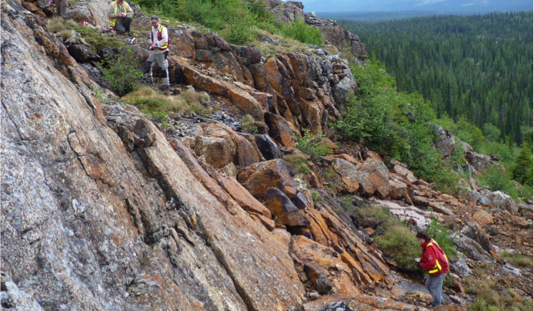Geologists on the Discovery zone at Northern Shield Resources’ Huckleberry copper-nickel property in the Labrador Trough. . Credit: Northern Shield Resources.
