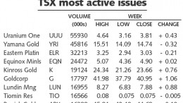 Australia (A$) April 8 April 1 Change Bendigo Mining 0.29 0.29 0.00 Centamin Egypt 1.49 1.48 0.01 Croesus Mining 0.28 0.28 0.00 Kingsgate Cons. 4.15 4.03 0.12 Lion Se…