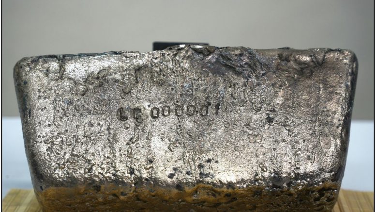 The first silver bar poured at Las Chispas mine. Credit: SilverCrest Metals.