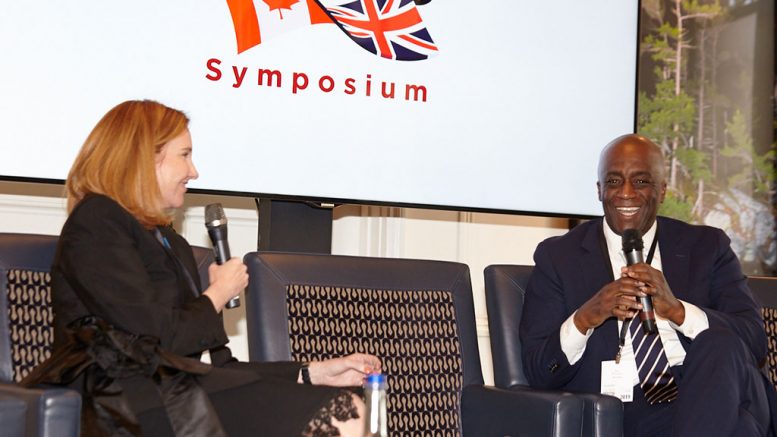 Eira Thomas, Lucara Diamond president and CEO, and Dean McPherson, TMX Group head of business development for global mining, at the 2019 Canadian Mining Symposium. Photo credit: Martina Lang for The Northern Miner.