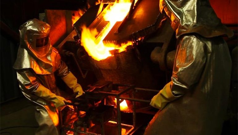A gold pour at the Seabee project. Credit: Claude Resources
