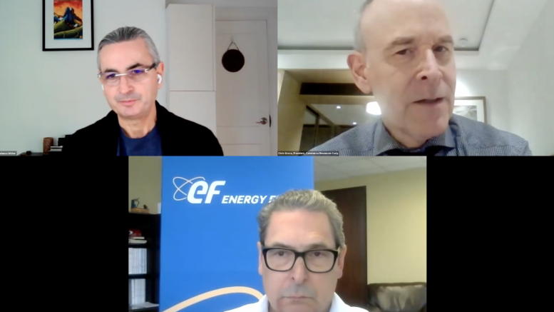 Clockwise from top-left: Carl A. Williams, Northern Miner senior reporter; Chris Grove, president of Commerce Resources; and Mark Chalmers, president and CEO of Energy Fuels.