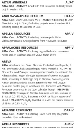 Some of the almost 300 Canadian-listed companies active in the uranium hunt include the following: