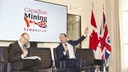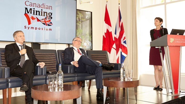 The "Mid-Tier Excellence" panel at The Northern Miner's Canadian Mining Symposium held at Canada House in London, U.K., on May 22, 2019, from left: Peter Marrone, executive chairman of Yamana Gold; Steve Letwin, president and CEO of Iamgold; and